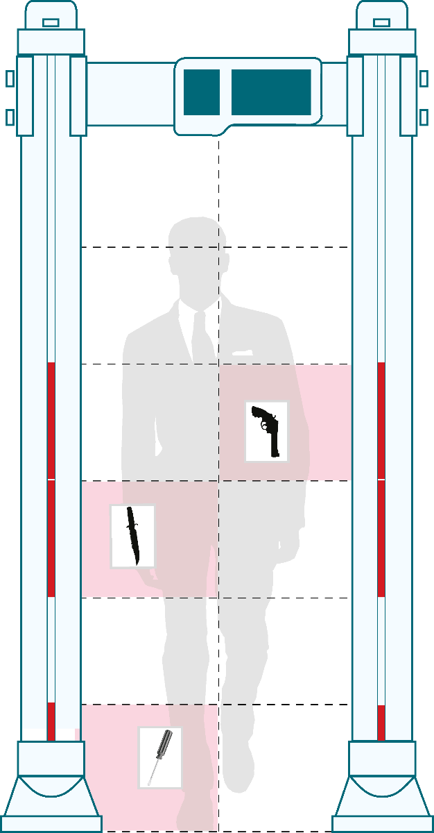 | Metal detector gates are ideal for the detection of devices that pose a threat to public safety and security (knives, firearms, impact weapons, explosives, etc.). They are suitable for airports, penal institutions, courts, factories and other high security locations. | ![]() |